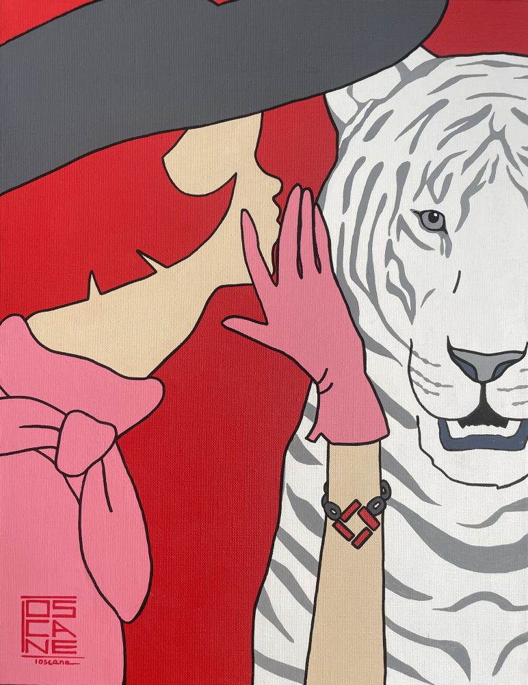 アール・デコの影響を受けたミニマルな表現言語は、厳密な象徴性によって構築されており、TOSCANEが過去に病と向き合った経験を反映する「白い動物」という癒しの存在を軸に展開されます。保護と変容を象徴するこのモチーフは、フランスと日本のイメージ世界を結びつけます。