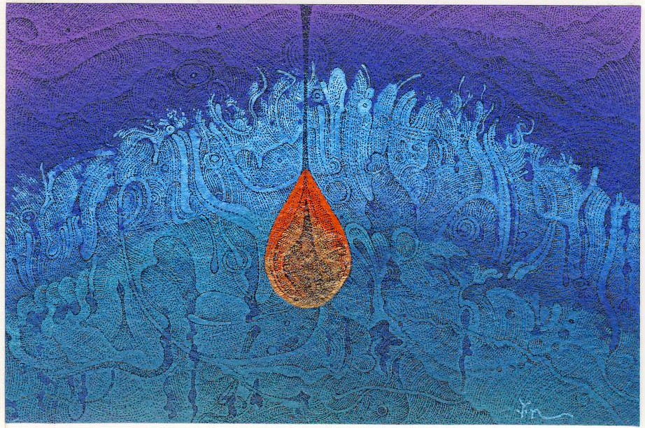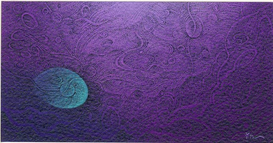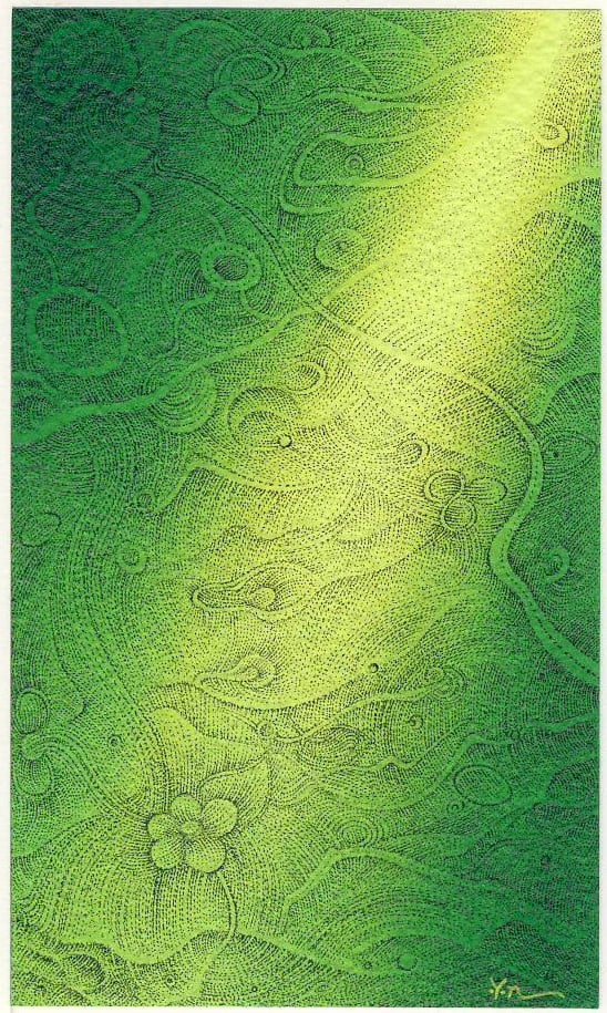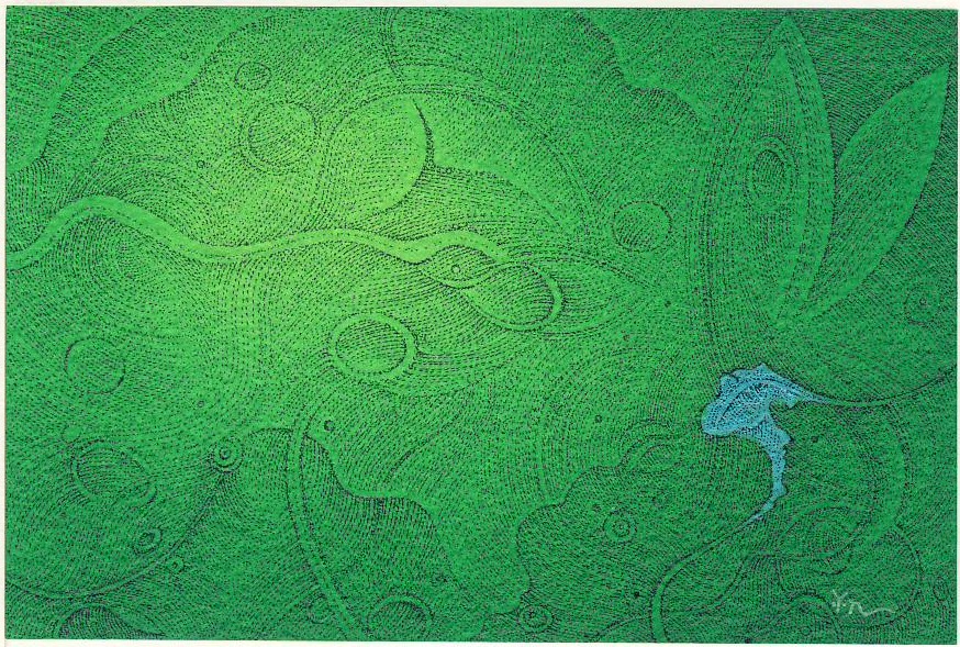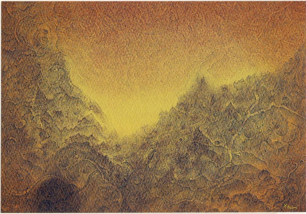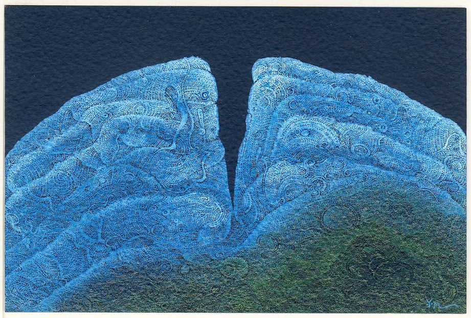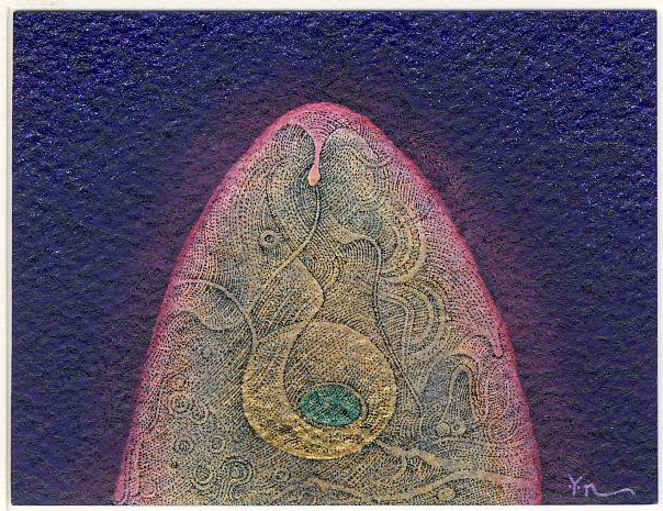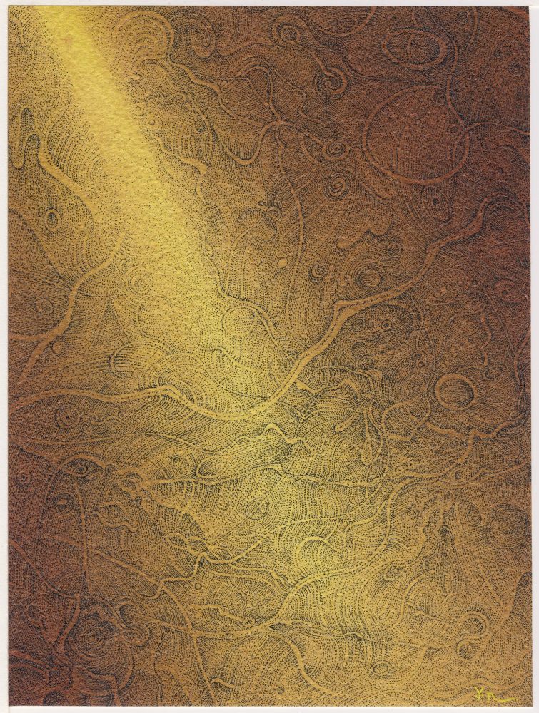 ⑯マタマタ 2025 紙にペン、インク、透明水彩、金属箔 paper on pen,ink, metal foil and watercolor 9 x 18 40,000円(税別)●売約済み