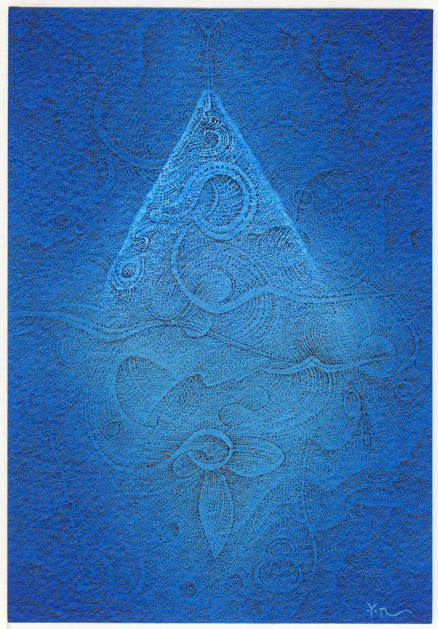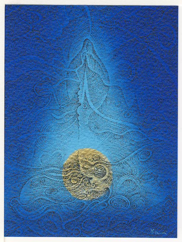 ⑬ネコ(スフィンクス) 2024 紙にペン、インク、透明水彩、金属箔 paper on pen,ink, metal foil and watercolor 9 x 6.5 25,000円(税別)●売約済み