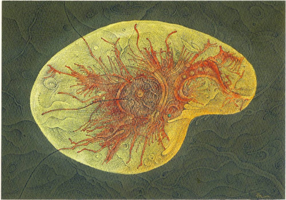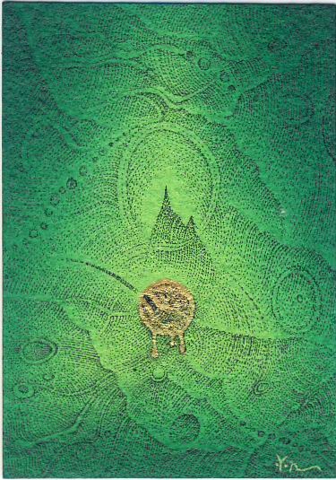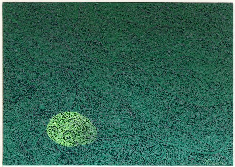 ⑮ゾウガメ 2025 紙にペン、インク、透明水彩、金属箔 paper on pen,ink, metal foil and watercolor 6.5 x 9 25,000円(税別) ●売約済み