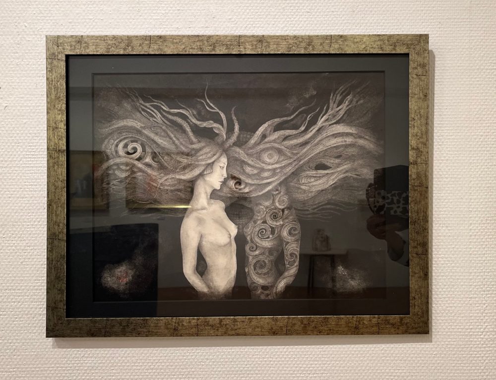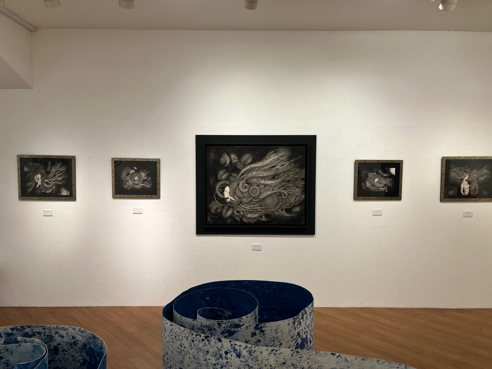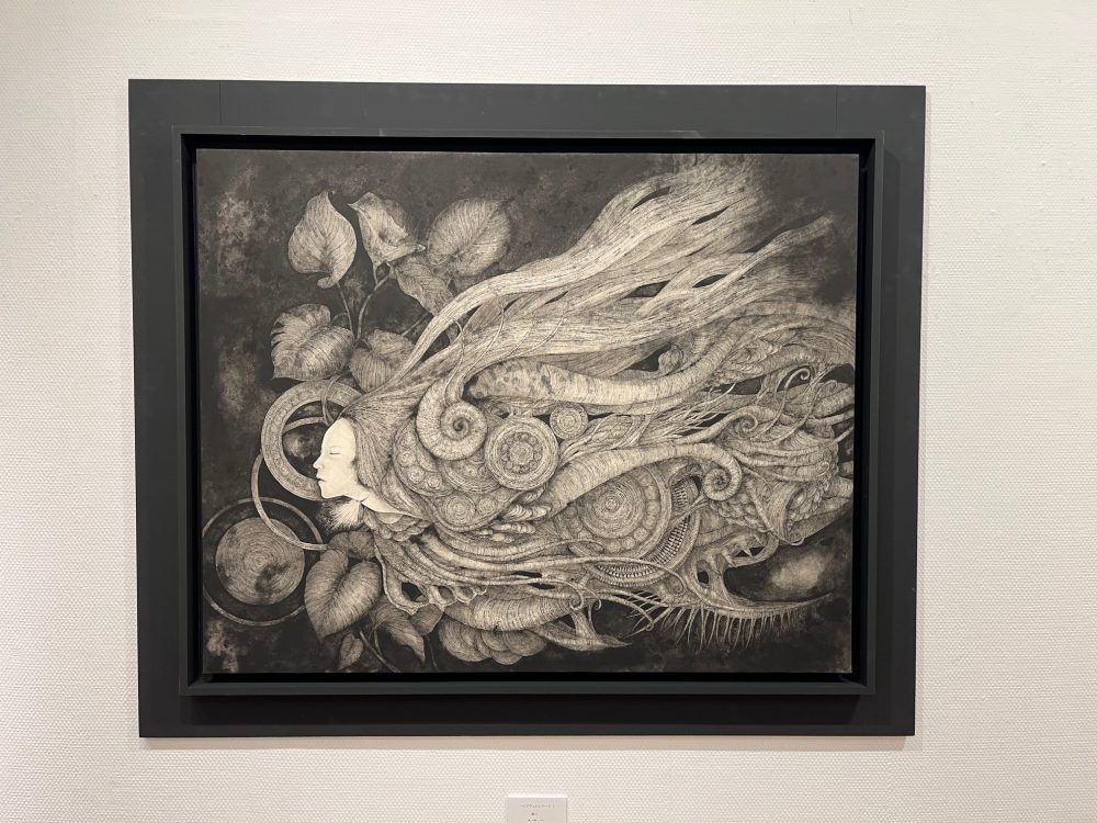 ①「ムードラ・ハイヌウェレⅠ」 2021年 墨、和紙、パネル 200,000円(税別)